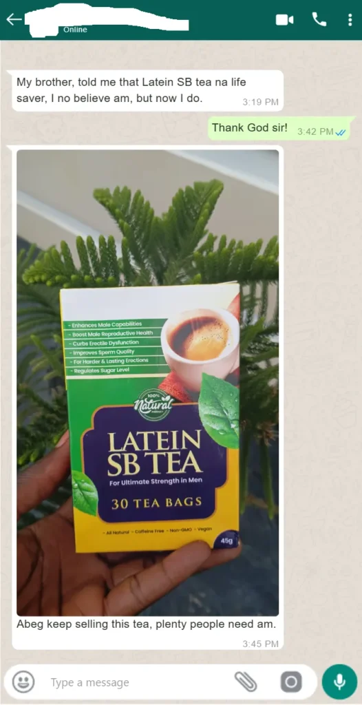 The Special Tea Designed to Help You Regain Your Manhood and Clear Infections. Latein SB Tea works by fixing the root problems like poor blood circulation, weak nerves, and hidden infections instead of just giving you a temporary “high.” With just one cup of this tea in the evening, Latein SB Tea helps your body: